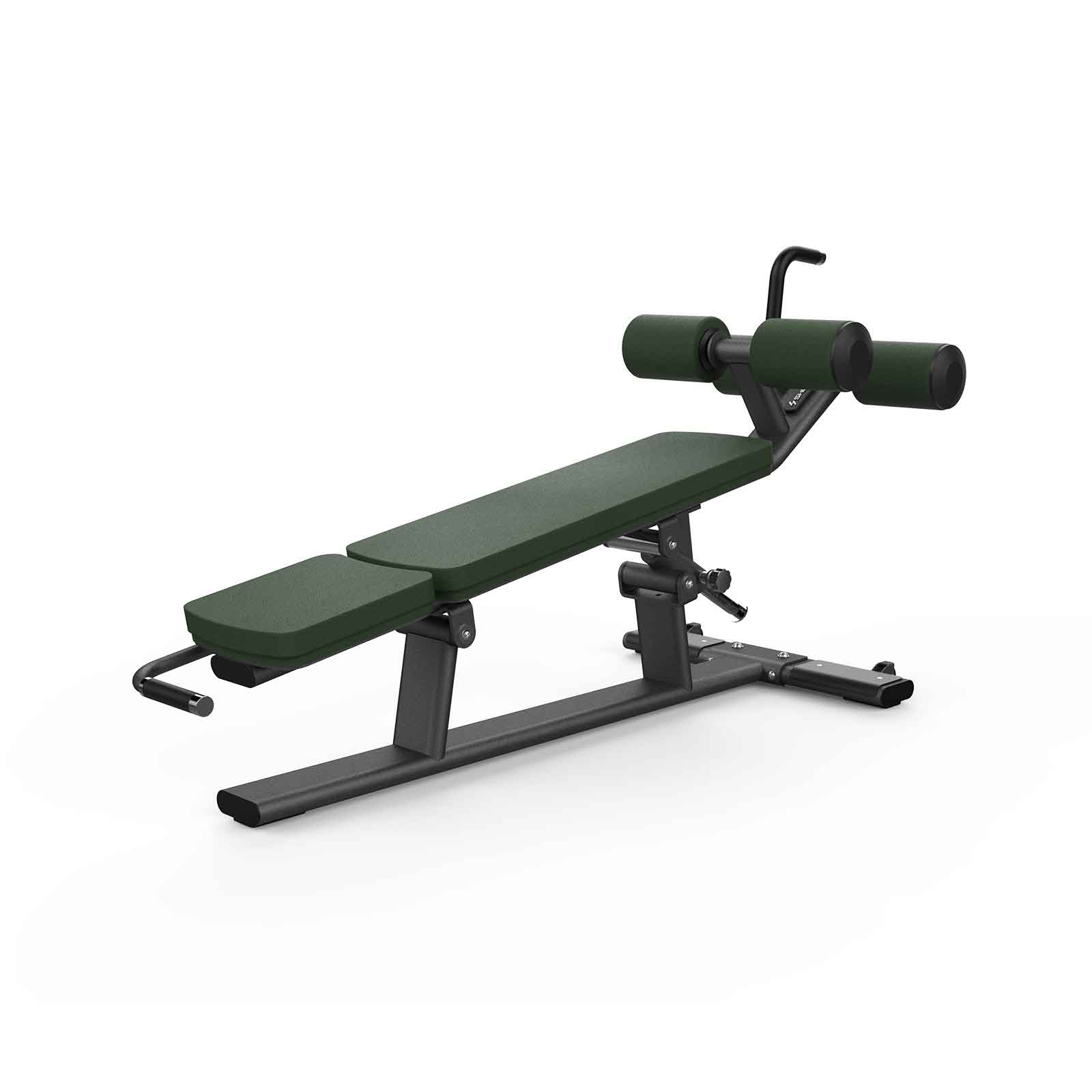 主要功能 适用于无氧运动,可锻炼腹直肌,腹外斜肌等部位肌肉1、最大训练载荷:150kg2、垫类(坐/背/胸/肘垫):头垫、躺垫不可调节;材质:胶合板+再生棉+原生棉+皮革3、最大人体承重:150kg4、主要管材规格:平椭120402.0mm5、皮革类:材质:环保PVC;颜色:墨绿色6、手把:材质:PVC;颜色:黑色7、端盖:材质:铝合